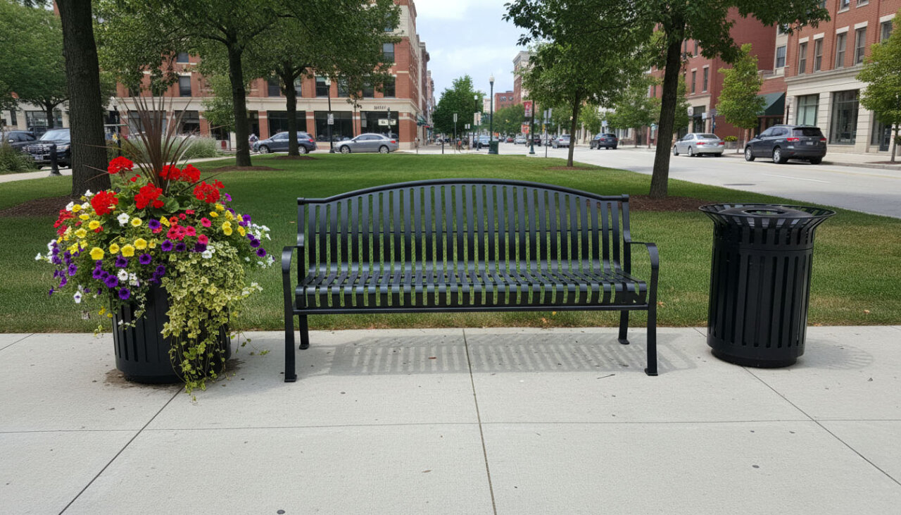 Also, thoughtful municipal outdoor furniture planning supports inclusivity and accessibility. New benches help improve rest points and comfort for families and seniors, high-capacity bins reduce required maintenance in parks and on streets, self-watering planters enhance beautification, and bike racks support both tourism, and active transit initiatives.