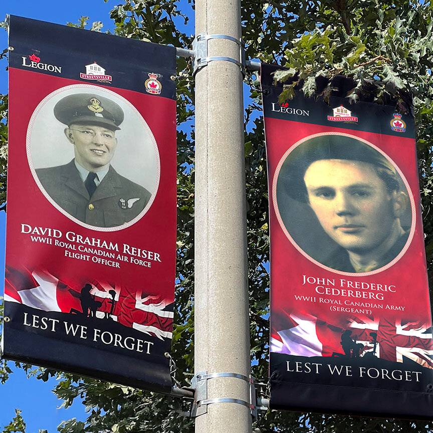 Please note: Veterans Tribute Banners are produced exclusively in partnership with Royal Canadian Legion branches. If your community wishes to start a program, we encourage you to connect with your local Legion branch for guidance.