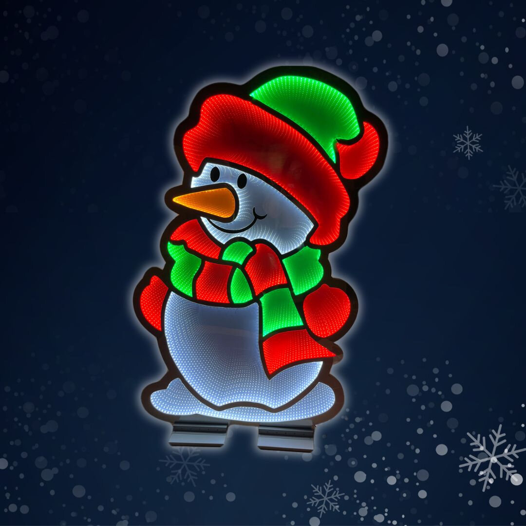 Illuminate your holiday destination with colourful, vibrant snowman that dazzles from every angle, creating an optical illusion that will leave everyone in awe!