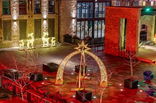 Welcome guests in style with the Ithaca Archway, a luminous holiday arch designed for plazas, corridors, mall entrances, civic buildings, and event pathways.