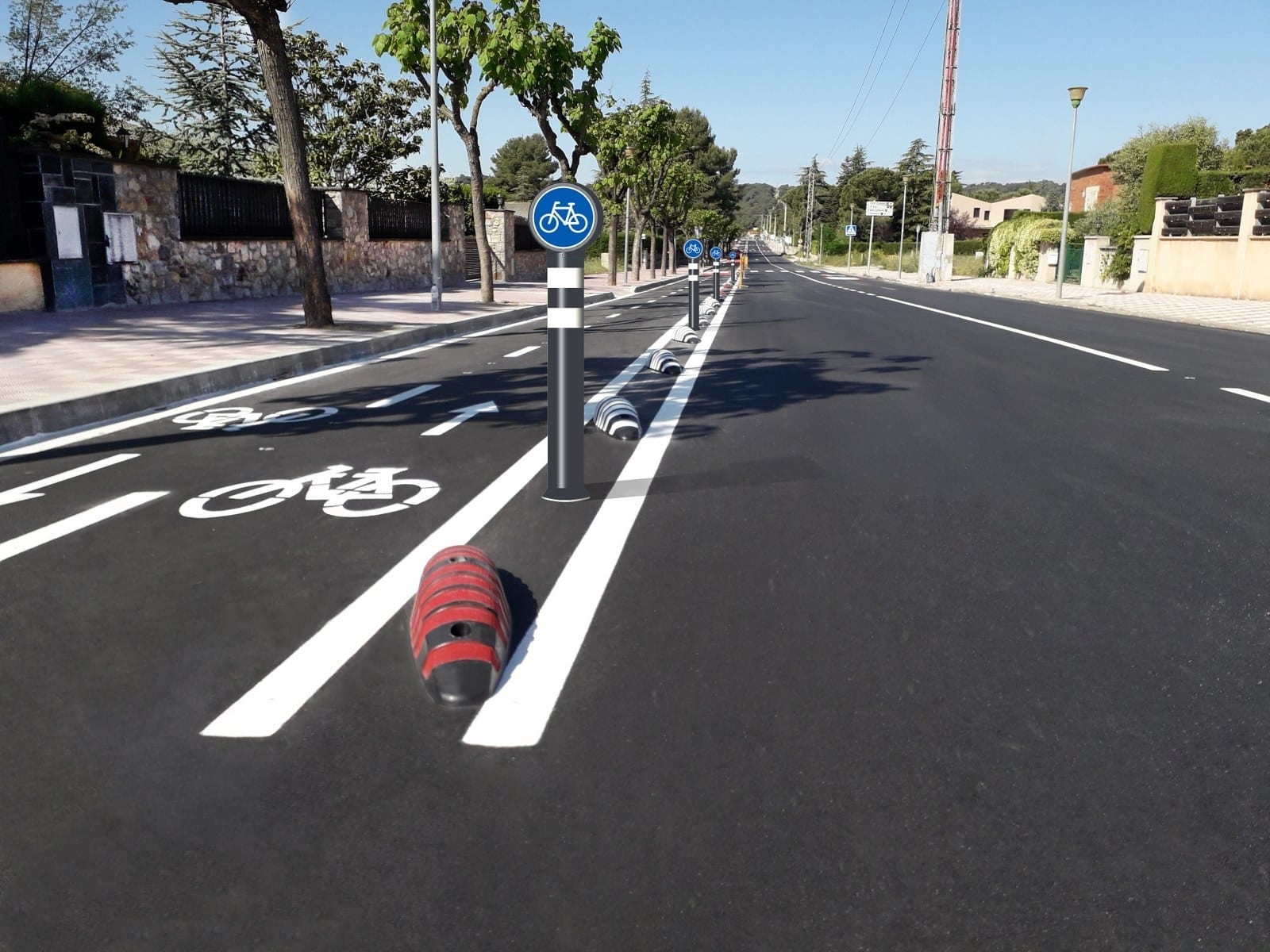 La borne Cyclesafe est une borne de signalisation avec de grands graphismes clairs, spécialement conçue pour la délimitation des pistes cyclables.