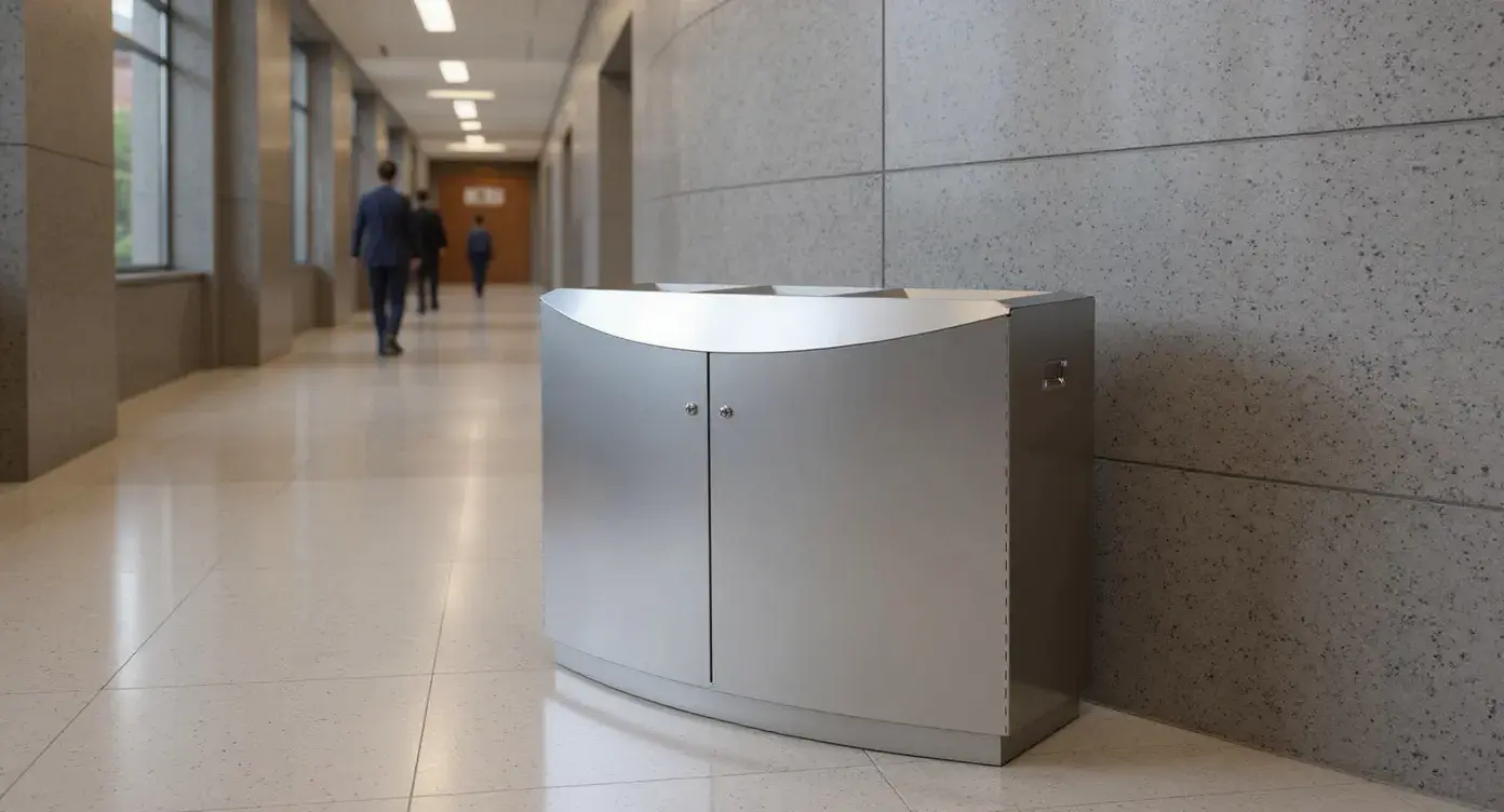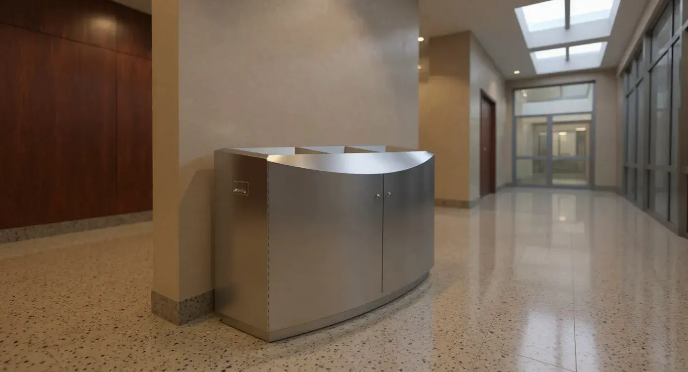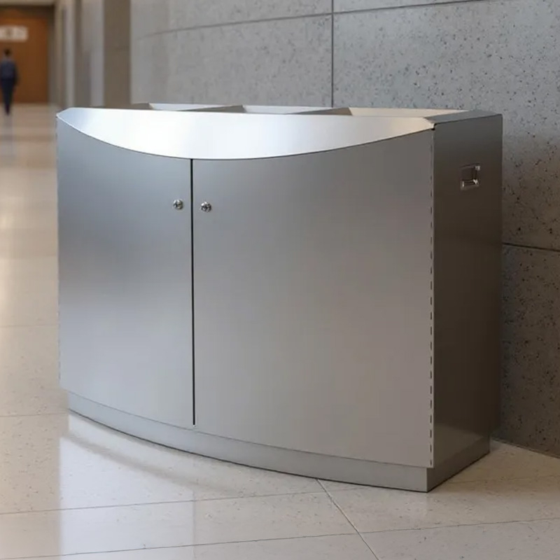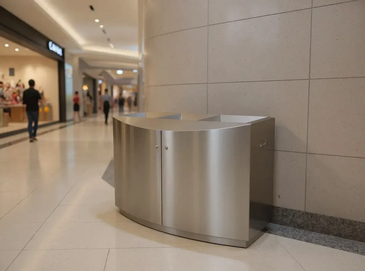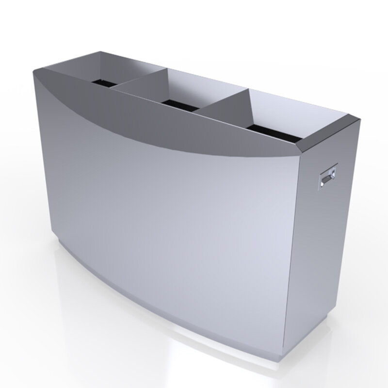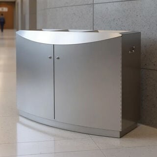 The Delta Stainless Steel Waste Bin from Classic Displays combines durability, accessibility, and modern style for high-profile spaces like luxury malls, transportation hubs, courthouses, government buildings, and hotels. Built from premium stainless steel, it features front-access liner doors for safer, more ergonomic servicing and is available with three waste streams to support effective recycling. With its clean, minimalist design, the Delta integrates seamlessly into upscale interiors while standing up to the demands of high-traffic environments.