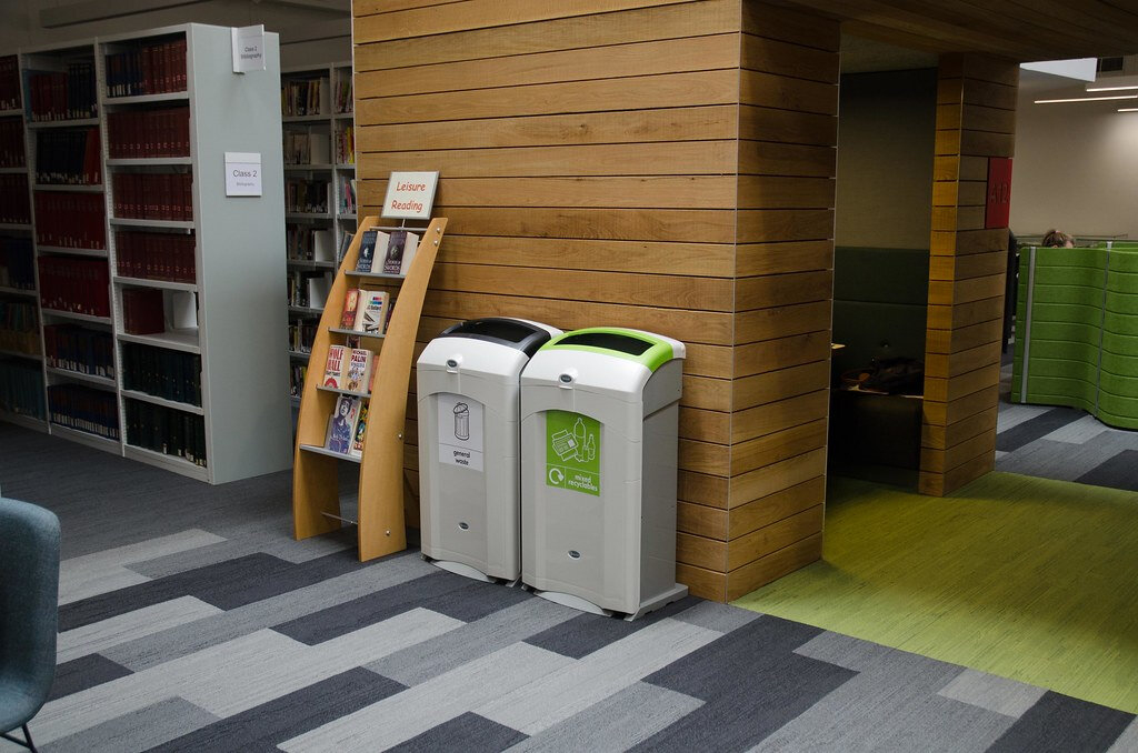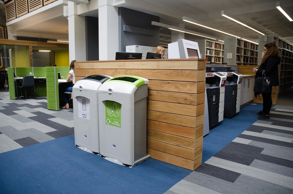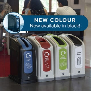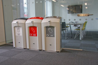 The Nexus 100 series features a wheeled liner for easy servicing, while offering many customizations and add-ons for interior areas requiring higher collection volumes.