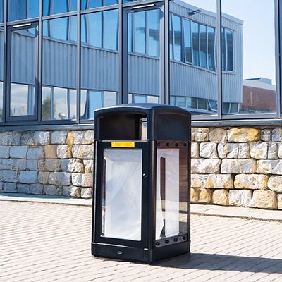 The Origin Vision 110 Transparent Security Bin is designed for public spaces where safety and visibility matter. Its clear panels make it easy for staff and security teams to see the contents at a glance, helping deter concealed items and improving overall crowd safety. Built from durable Durapol and Vandalex materials, the bin stands up to heavy use in busy environments like transit hubs, stadiums, shopping centres, attractions, and event venues. The bin is quick to operate, easy to maintain, and made with recycled materials, making it both practical and environmentally responsible. If you need a secure, stylish, and reliable waste solution for high-traffic areas, the Origin Vision 110 delivers exactly that.