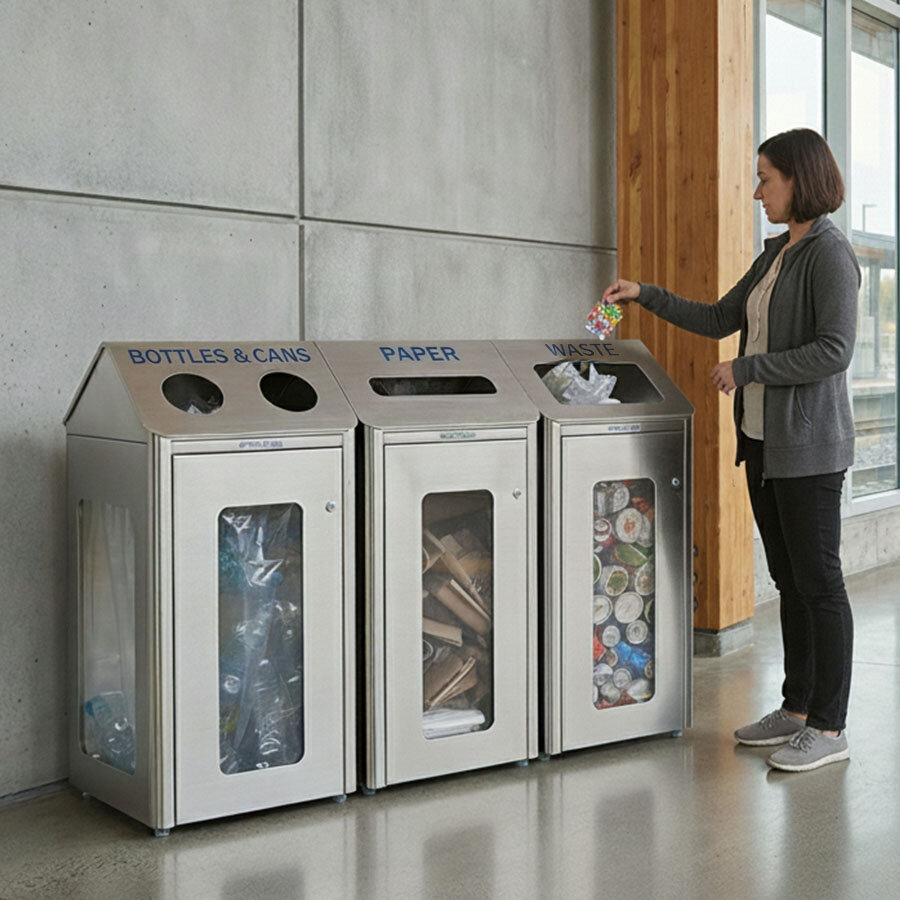 The Tokyo Transparent Security Waste Bin brings together a clean stainless steel look and transparent UV treated lexan panels on all sides, giving staff full visibility into the bin for added safety in public spaces. It’s a reliable choice for stadiums, transit hubs, campuses and other high-traffic areas that need both function and peace of mind. The stainless steel body stands up well to weather, wear and daily use, making it suitable for both indoor and outdoor installation. The Tokyo is a modular system that allows for multiple options that will fit into any location.